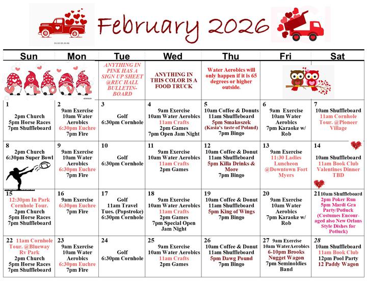 SEMINOLE CAMPGROUND CALENDAR OF ACTIVITIES