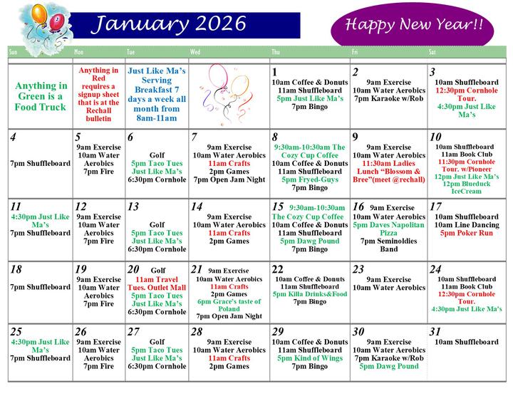 SEMINOLE CAMPGROUND CALENDAR OF ACTIVITIES